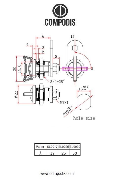 Keyless camlock 30mm